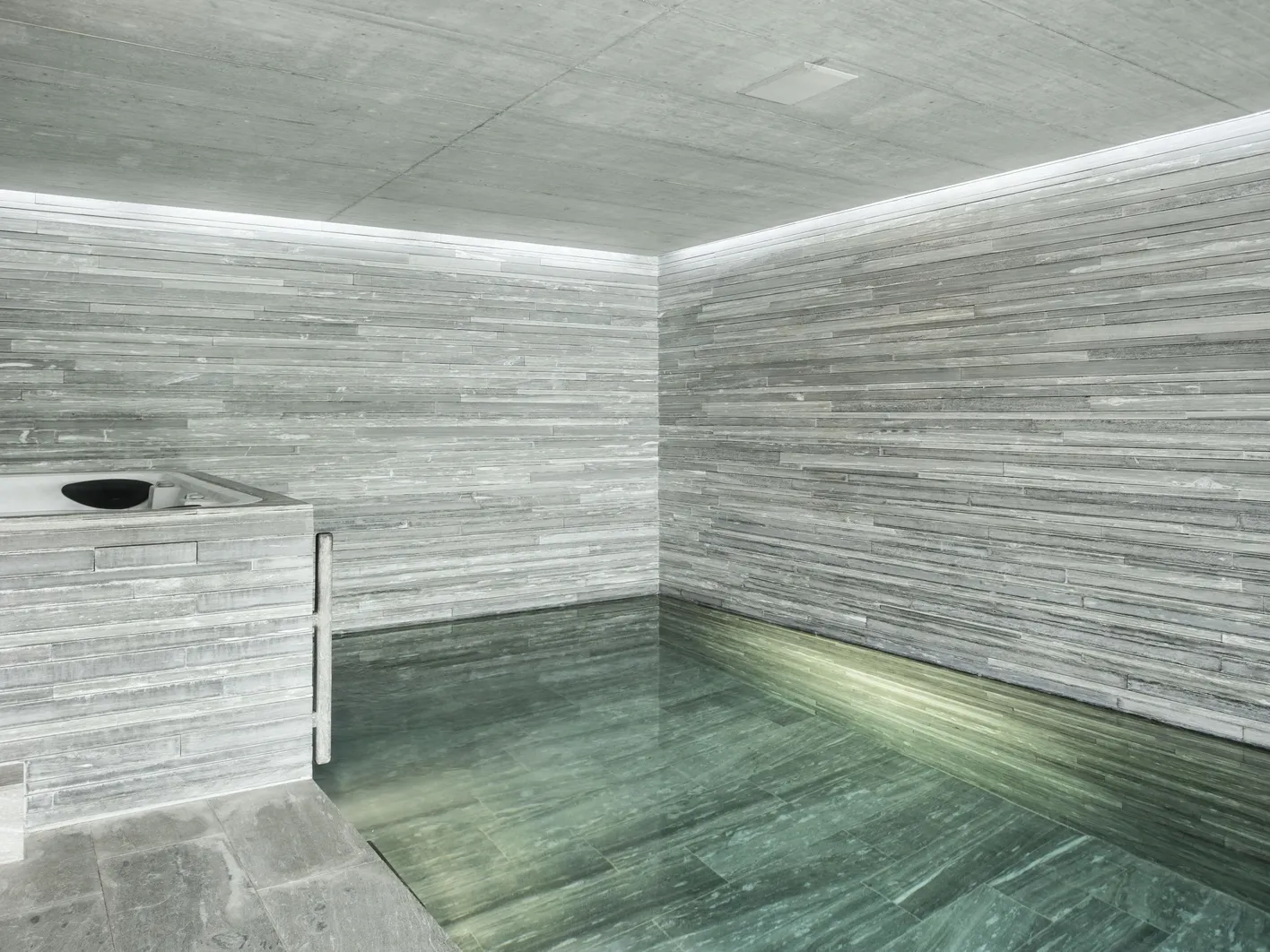 Wellnessräume sind Orte der Entschleunigung. Räume, in denen Materialien, Licht und Wasser bewusst aufeinander abgestimmt sind. Naturstein, Keramik oder strukturierte Oberflächen prägen dabei das gesamte Raumgefühl: von grosszügigen Wandflächen bis zum Becken.
