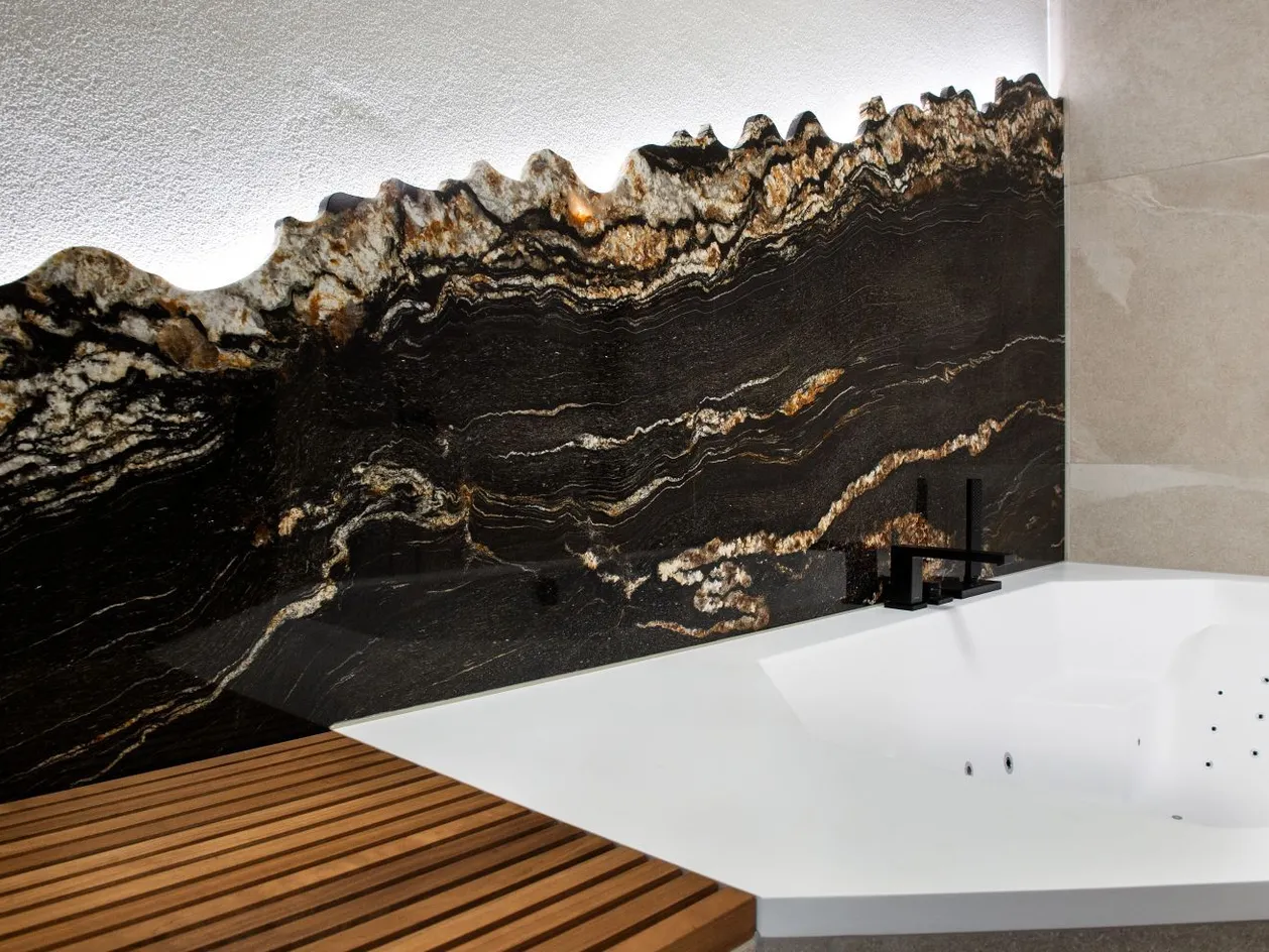 Ein klarer Trend sind grossformatige Naturstein- und Keramikflächen, die durch ihre ruhige Wirkung eine besondere Atmosphäre schaffen. Weniger Fugen, durchgehende Materialflächen und präzise Übergänge lassen Räume grosszügiger und klarer wirken. Auch natürliche Materialien gewinnen an Bedeutung: Kalkstein, Travertin oder Quarzit bringen eine warme, authentische Ausstrahlung in Wellnessbereiche.