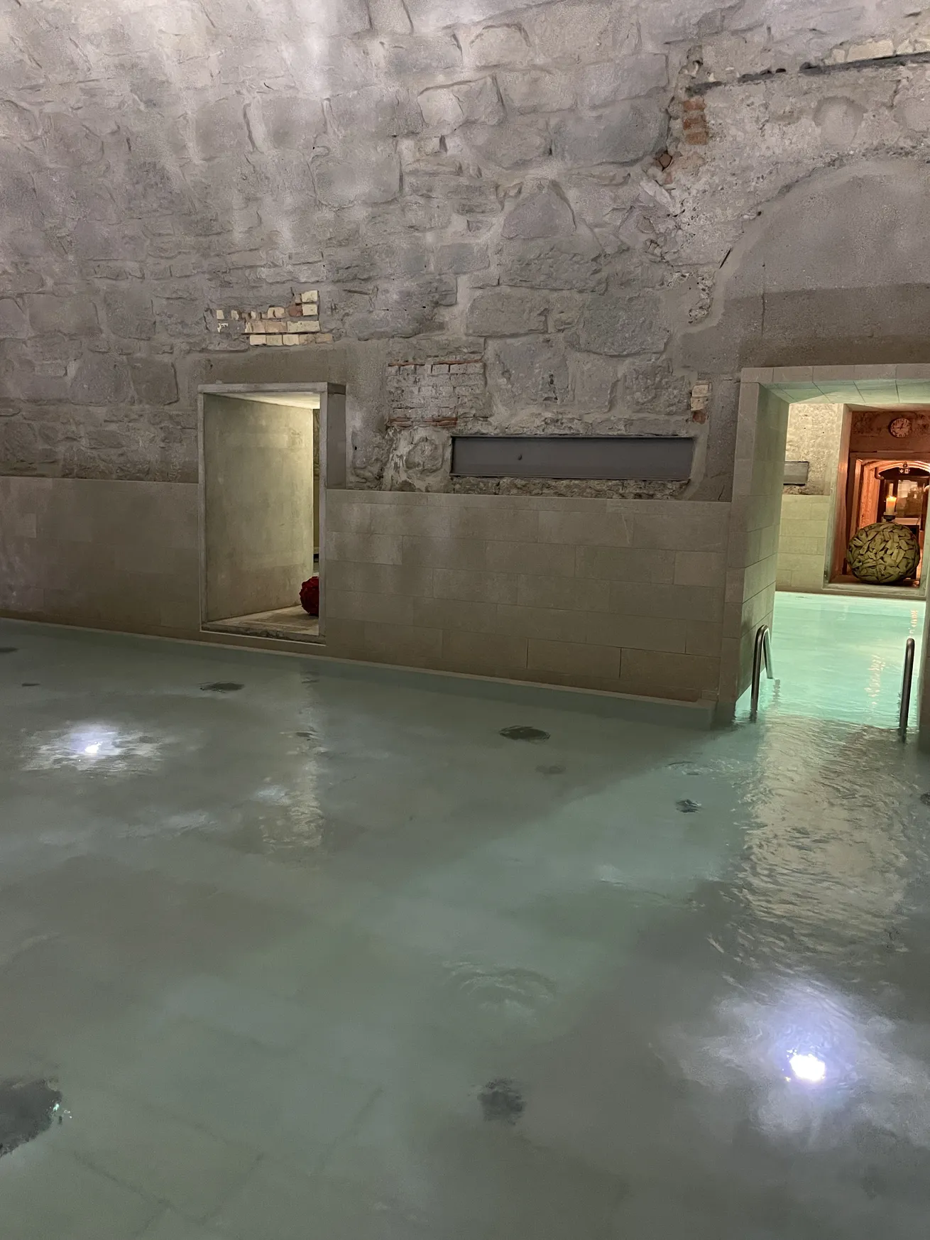 Jede Steinplatte und jede Keramikfliese wurde sorgfältig ausgewählt und präzise verarbeitet. Die warmen Farbtöne sowie die fein abgestimmten Details fügen sich harmonisch in das klassische Design der Thermen ein.
