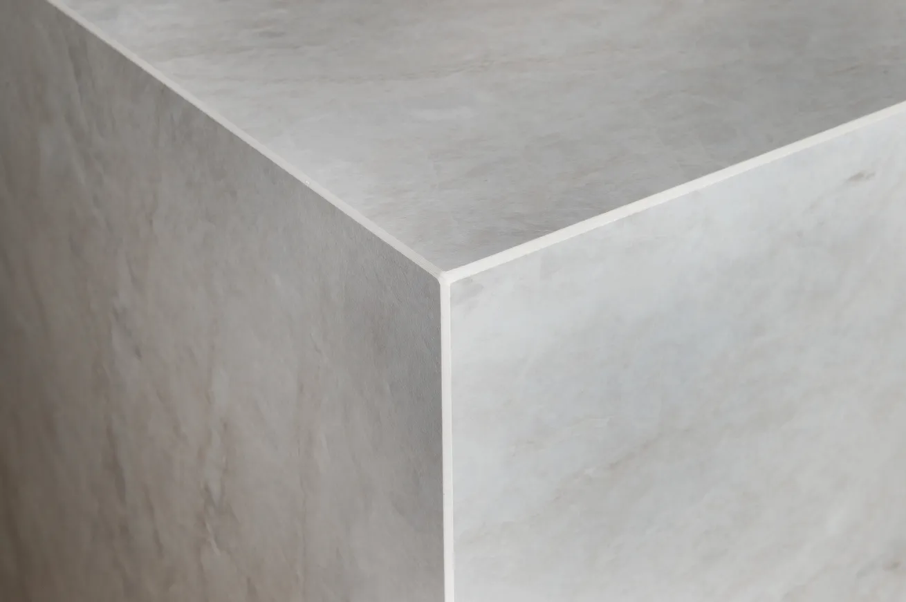 Die sanfte, steinartige Struktur wirkt natürlich und gleichzeitig präzise – eine Oberfläche, die sich nicht aufdrängt, sondern den Raum trägt. In Kombination mit Holz, Metall oder Glas entstehen ausgewogene Materialkonzepte mit ruhiger, moderner Ausstrahlung und zeitloser Eleganz.