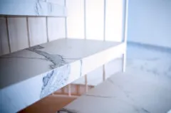 Neben der ästhetischen Wirkung erfüllen die Keramikplatten höchste funktionale Anforderungen: Sie sind widerstandsfähig gegenüber Feuchtigkeit und Abnutzung und damit ideal für stark beanspruchte Bereiche geeignet.