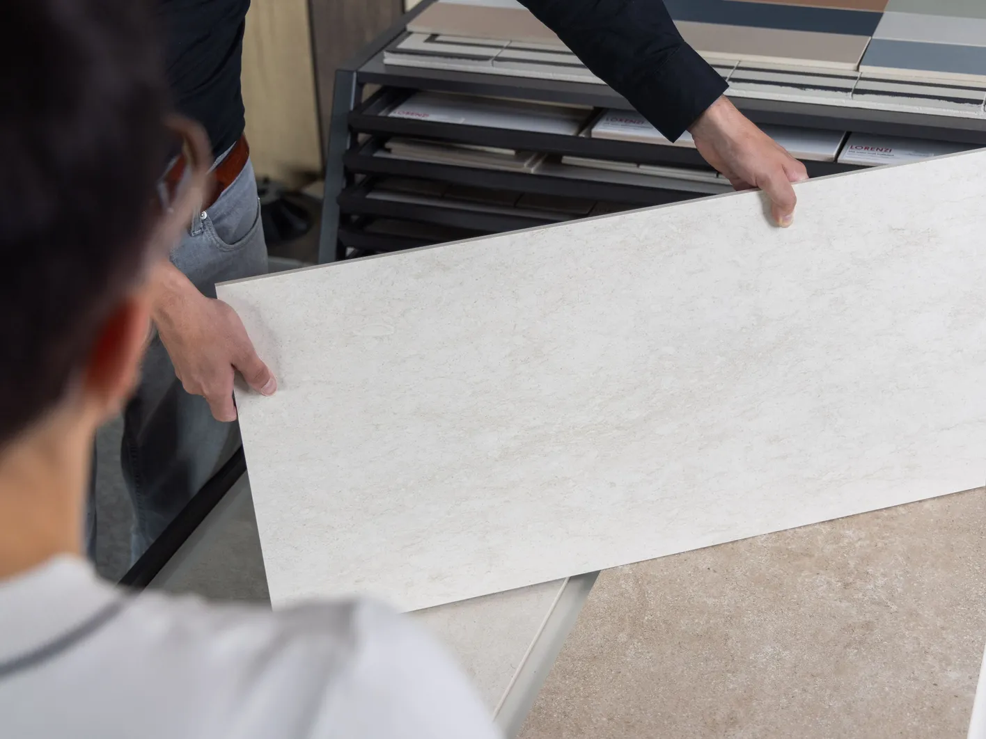 Im Zentrum steht der Kalkstein Jura Gelb; ein dichter, widerstandsfähiger Naturstein mit warmem Farbspiel von hellem Cremegelb bis zu kräftigeren Gelbtönen. Seine feinen fossilen Einschlüsse verleihen ihm Lebendigkeit.