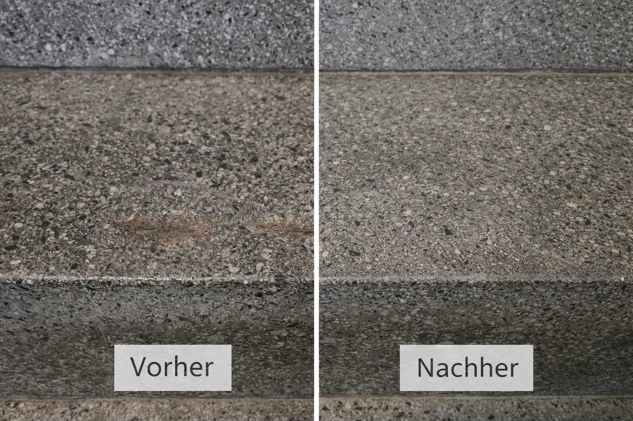 Schnelles Handeln ist entscheidend. Je nach Fleckenart (Öl, Rotwein, Kalk) gibt es unterschiedliche Vorgehensweisen. Kontaktieren Sie uns am besten mit einem Foto. Wir geben eine erste Einschätzung.